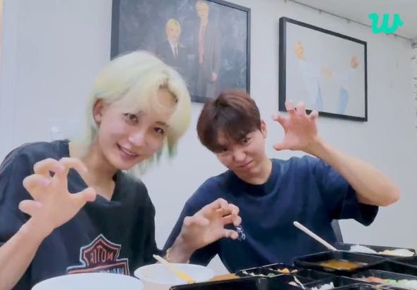 There’s some cute speculation that Jun lives with Minghao, but I think it’s more likely that they live nearby and spend a lot of time together. E.g. at 19:30 of this WeVerse Live, Jun knows Minghao’s door code and enters his house, but then later says that he was going to eat his takeaway alone if Minghao didn’t text him about the Live. (But this OP still writing fics about jun8 housemates, don’t let reality get in the way of good fiction.)